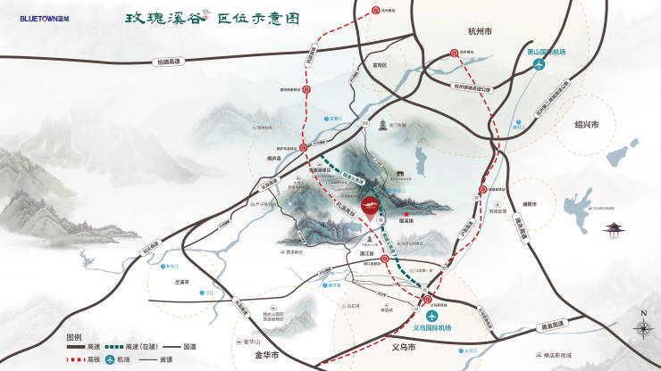 2023,蓝城携玫瑰溪谷再入“金义都市圈”,结合山、水、温泉、度假、传统文化于一体,溯源山水,打造中国玫瑰系溪谷新作。
