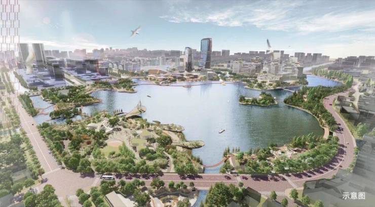 项目西侧对望明湖,是嵌入这片高端人居版图的点睛之笔。项目东侧有湖滨公园,北侧苳家横河的滨水绿带环绕,南侧未来是一片林下公园街区。项目地块是被自然绿意环抱的静谧场域,湖景、公园、街景交相辉映,充满自然绿意又潮流活力。