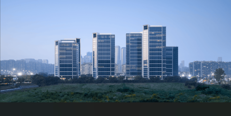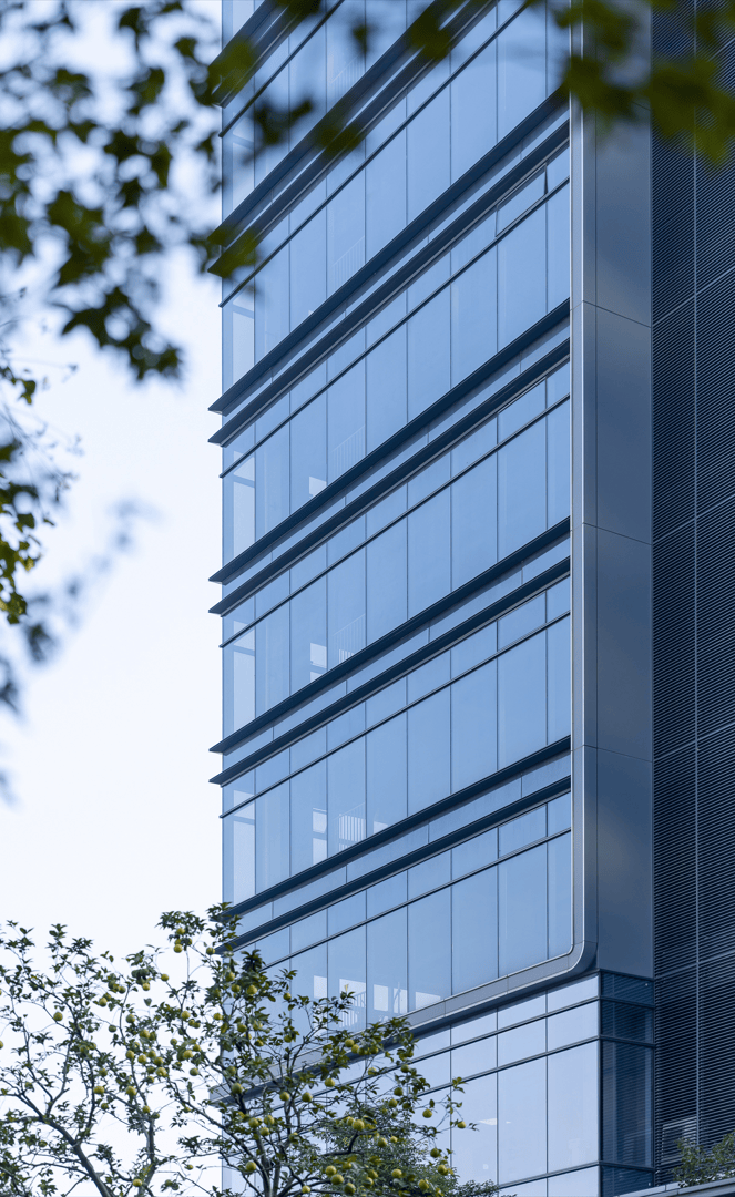在细部构造上,我们借鉴了工业设计的手法特征,在色彩上尊重杭州水墨江南的城市意象,用银灰色黑色两种金属线条勾勒形体,搭配不同色泽度的玻璃,体现出建筑的未来感和科技感。