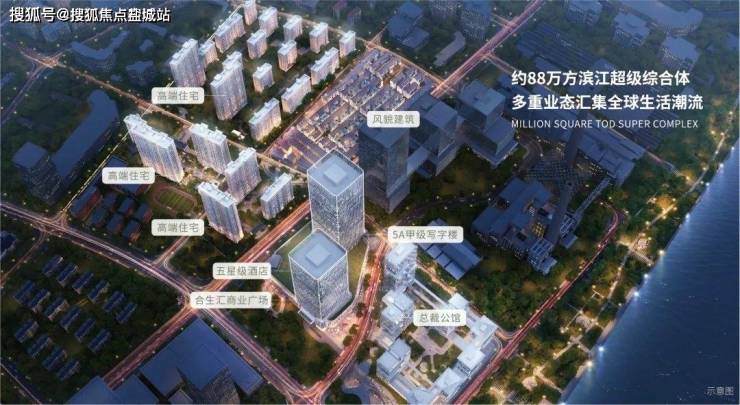 项目总占地约14万平方米,总建筑面积高达88万平方米,是一个集购物中心、品牌酒店、滨水总裁公馆、5A甲级写字楼、高尚住宅和海派别墅等多种业态于一体的TOD旗舰综合体。其中,合生汇商业广场作为项目的商业配套,建筑面积约11.3万平方米,是区域内首个滨江超极合生汇,填补了区域内商业综合体的空白。此外,项目周边还有多个商业MALL和三大市级商圈,如宝龙旭辉广场、上海国际时尚中心、五角场商圈等,为居民提供了丰富的购物和休闲选择。