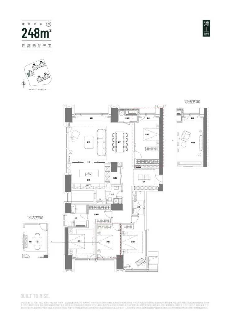 龙盛·湾上住宅建筑采用塔冠的设计,与区域内天际线交相呼应;立面选用低饱和度的橙色和深灰色作为主基调色,使用铝板结合深灰色门窗线条,形成简约高奢的风格,能够经历时间考验,发自本质之美。