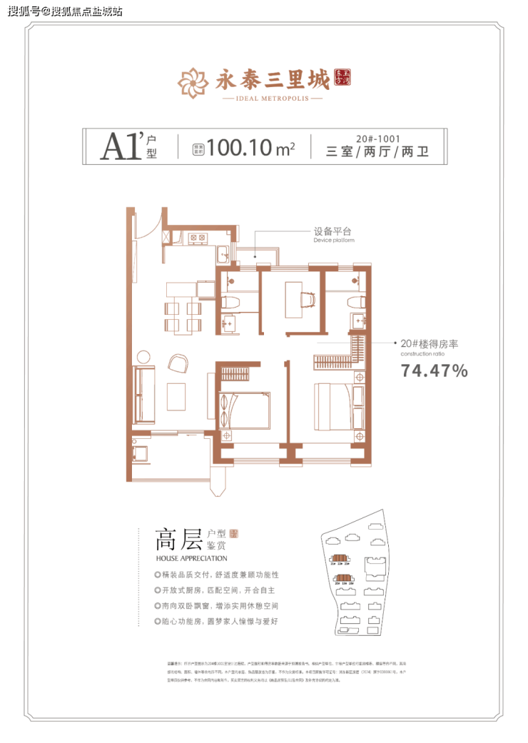项目主推建面约100㎡左右,三个主力户型布局非常相似,都是功能性和尺度感完美结合的明星户型。
