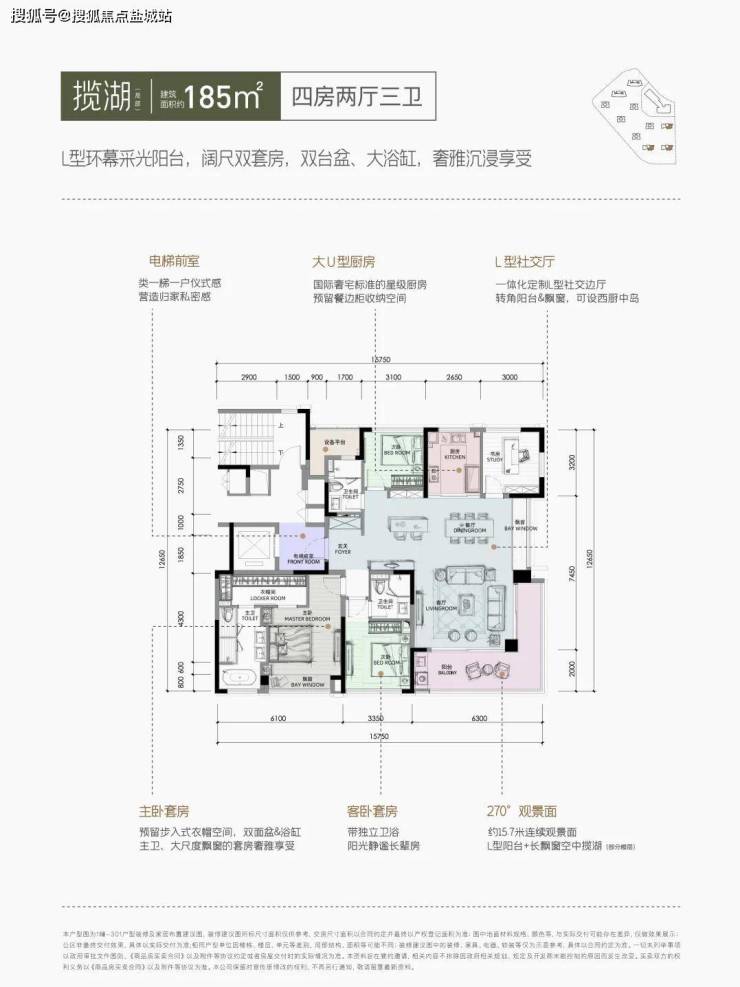 高端住宅的价值,一大半在窗外,而建面约185㎡的双厅独占双面采光,拥有270°观景视野,L型环幕阳台+长飘窗,舒适度远胜南北对流,打造成为超广角“观景舱”,置身其中,将室外湖景一览无余;双套房设计,其中约6.1m开间超级主卧,舒适度堪比星级酒店套房,连卫浴间都是朝南。