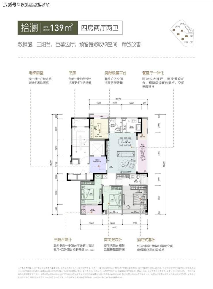 户型139-180平方米。项目位于望金沙西侧,位置绝佳,地铁站大约400米,周边还有双天街、印象城、银泰城等综合体加持。产品上,这是万科“拾”系产品在杭州的首发双子星之一。