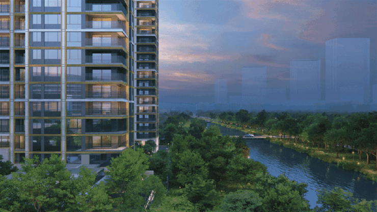 金沙湖旁的朗拾湖著,如同闹市之间一座松弛的岛。三面河景,一面望湖,香槟金线条的“画框”之内,则是象牙白和星空灰铝板的组合,更有轻盈感,与灵动的水景呼应。当你在朗拾湖著看湖上的风景,朗拾湖著也将成为湖上的人眼中的风景。
