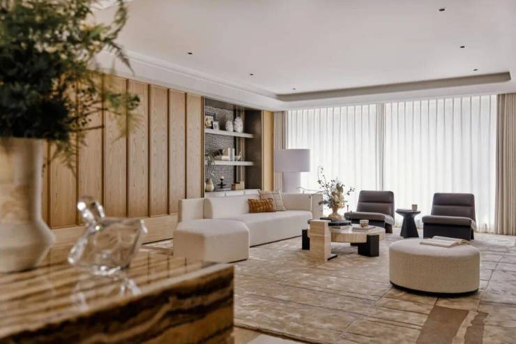 精装体系,则重新定义大宅内涵:嘉格纳、Poliform、柏丽等国际品牌仅是基准线,真正的奢华藏于60丝加厚木饰面的温润触感、繁复实木复合拼花地板的艺术肌理,以及全屋收纳系统的精致温度,真正实现高改大宅的成品交付。