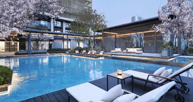 吉野樱与缤纷的花草植被,尽情点缀着度假主题,让多巴胺情绪在纷繁花色中越加浓郁。此刻,没有工作名录、没有人际往来,有的只是闲适的度假时光。