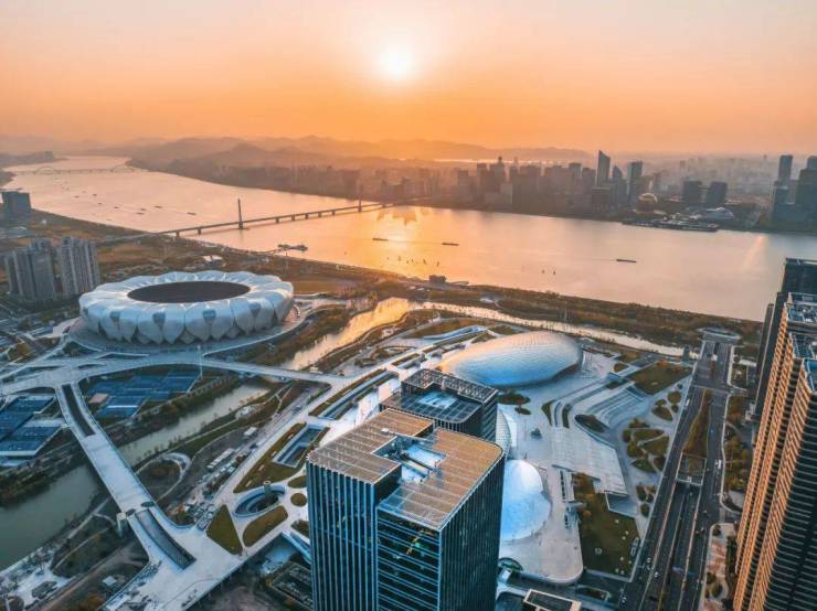 一面正对“日月同辉”和市民中心,没有偏角,更没有遮挡。杭州「新世纪中轴龙脉」正在这一视线上,自武林中心—市民中心—奥体中心,这一格局奠定了杭州整体城市的气运走向。