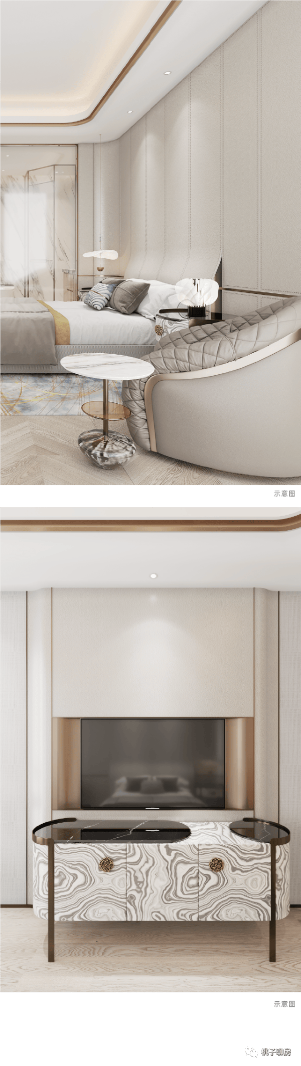 主要材料:大理石、奢石、黄铜、不锈钢金属、影木、烤漆、特殊墙纸。