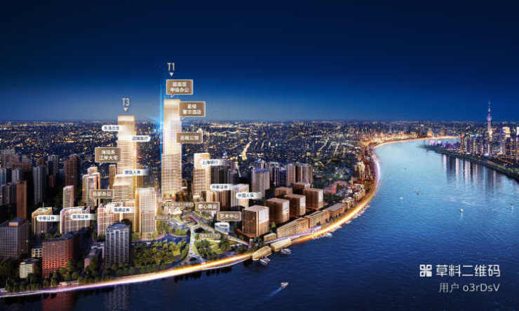 约300米超高层,约240米超高层,约150米双塔,绘就外滩天际线,占据金融新高地,释放国际商务感召力。