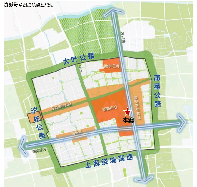 田字绿廊:S4高速公路、东方美谷大道与新城四至围合而成