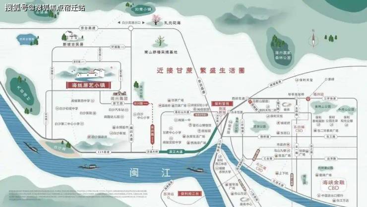 小镇周边有滨江大道、绕城高速、地铁5号线-荆溪新城站(在建)等交通资源拱卫,便捷通达全城。同时,小镇近接鼓楼西,揽获市中心商圈配套辐射,承接市中心外溢优质资源,为福州生活圈建设添砖加瓦,成为即时可达的城市侧翼,未来价值,不可估量。