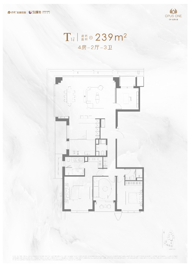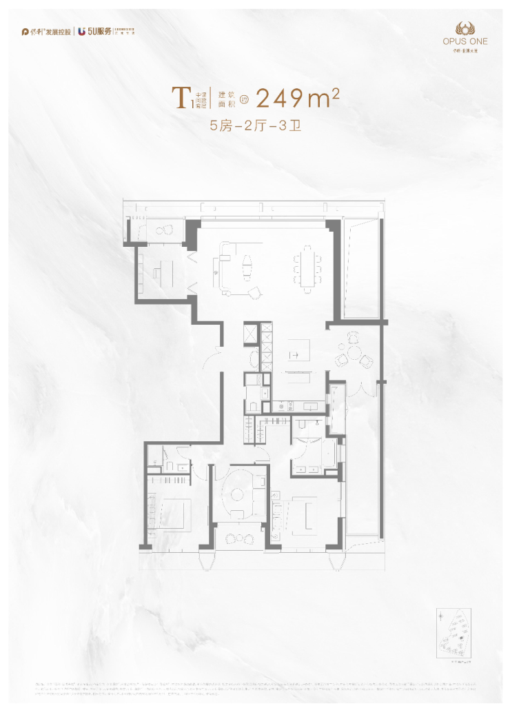 ⑤ OPUS ONE 500空中行宫:4+1房&双豪华套房规制、2梯1户超大专属电梯厅、超大宴会厅、5个阳台、独立内玄关、阳台、起居厅、步入式衣帽间、双台盆浴缸卫生间、灵活X空间;