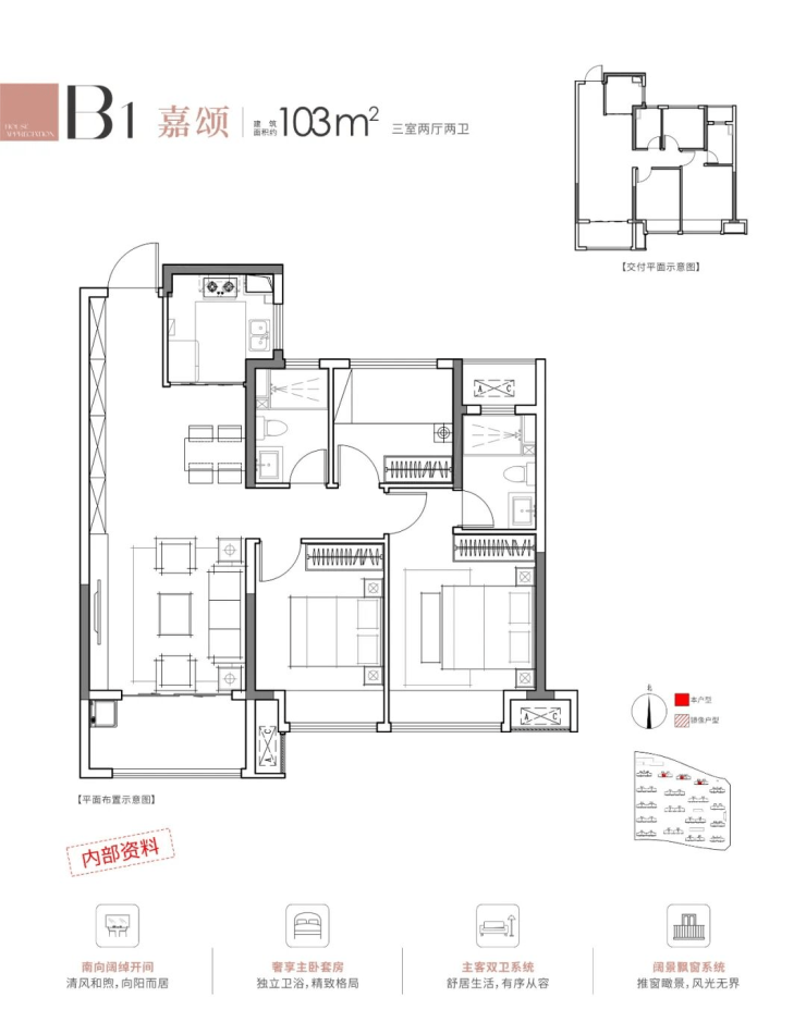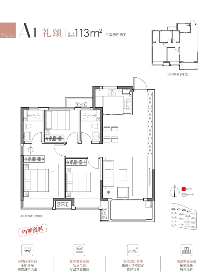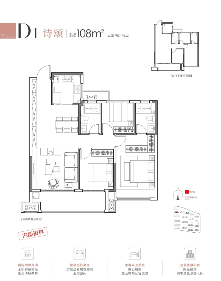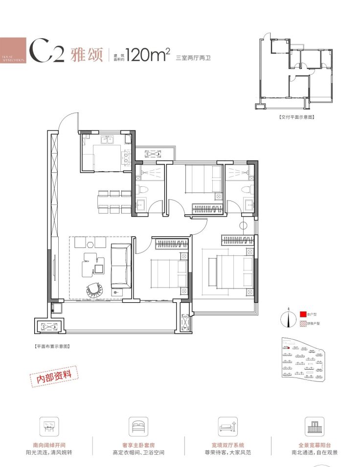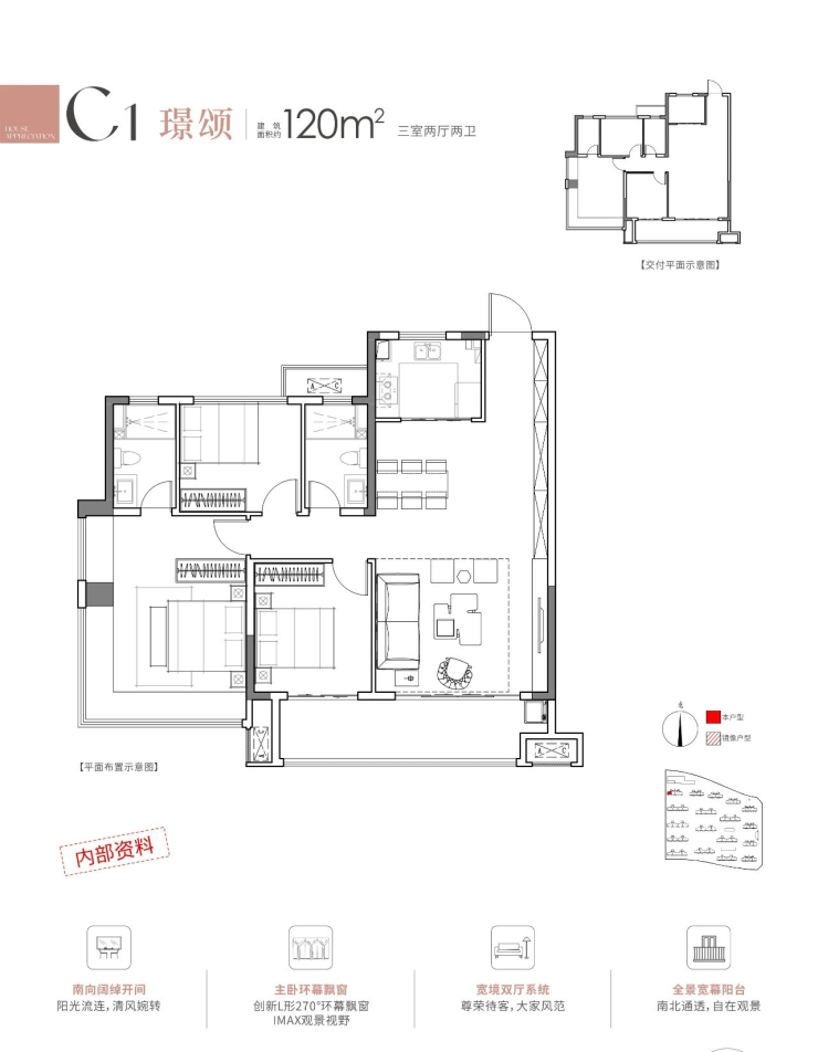 ▼建面约120㎡:3房2厅2卫,格局方正,南北通透,南向三开间宽幕采光面,搭配7.7米超大全景阳台,采光通风效果不错,尤其是双卫设计,采用三段式,干湿分离,轻松解决日常生活烦恼。