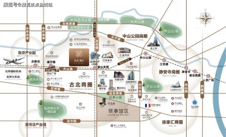 全球资源流向,跨越时代峰值,依托大虹桥,流向大古北,大虹桥开发区、长风公园商务区、,漕河泾开发区、临空产业区围合,生活于古北的名流,超50%皆为海外精英,国际化的符号,在时代翻涌的浪潮中永不褪色。
