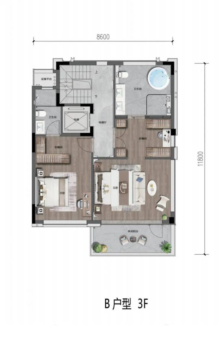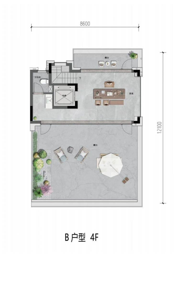 一宅多用的空间组织形式,通过底层不同标高的多重空间、上层露台、阳台等复合空间,模糊室内外边界、让室内外空间双向延伸,让每户都拥有“有天有地”理想的生活方式,兼具多层次、独立性和度假感受。