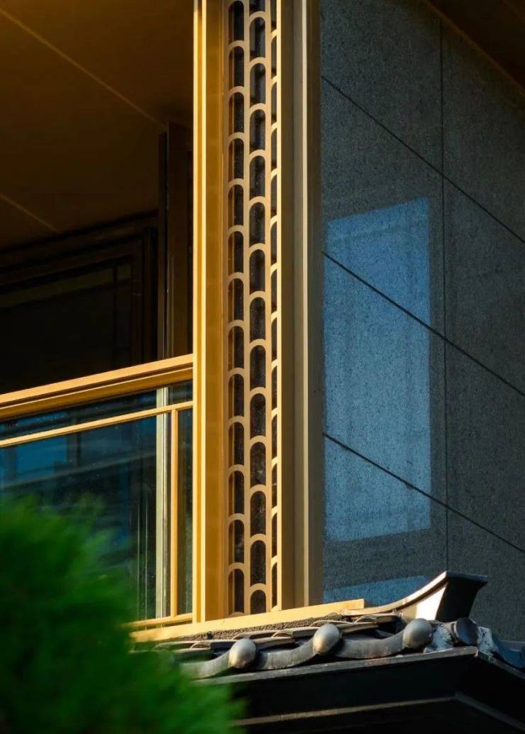 现代与传统的融合与补充,贯穿在整个设计当中。通过对宋韵建筑轻盈、精致、通透的特点用现代手法加以诠释,将宋式建筑元素构件针对性的做出原创转译设计,通过对“将军门、飞檐、重檐、绞角造、板引檐、普拍枋与阑额、方格挂䈋”等中国传统建筑元素的转译、复兴,为中式建筑美学带来新的建构与发展。