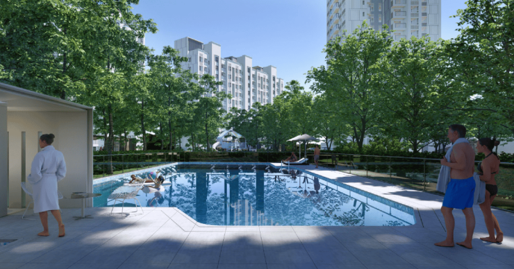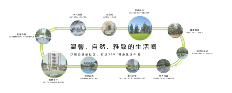 格林水岸项目拥有超大的内部园林空间,在园林户外活动空间根据年龄、使用时段等、活动类型等因素进行细分,形成儿童专属的星光森林儿童器械区;面想亲子娱乐的草坪聚会区;面想老人的林下阅读区、健康慢跑以及全年龄段的森林会客、碧波泳池、林下健身等区域。