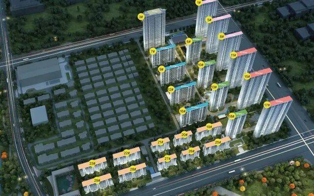 7#、9#、12#、16#为11F洋房,毛坯产品,建面约143㎡,顶楼带复式;19#-23#、25#-29#为叠墅,中叠和下叠建面约200㎡,上叠建面约165㎡。