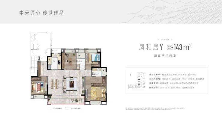 作为中天入驻泰州主城的力作,中天·栖凤华庭的户型设计也颇具亮点,户型面积约77-180㎡,每个户型功能性齐全,舒适层高、南向超16米采光、大横厅、270°采光.....
