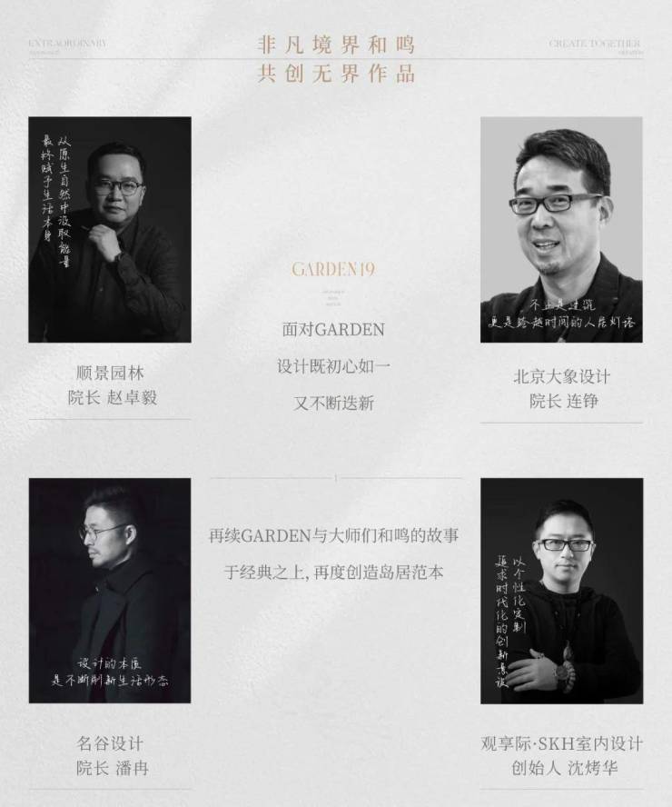 秉承肇启划时代作品初心,中堃置业再出发,携手建邺国资旗下南京智慧绿岛开发建设,邀约名谷设计院长潘冉、顺景园林院长赵卓毅、北京大象设计院长连铮、观享际·SKH设计创始人沈烤华等名家共创,续写GARDEN作品传奇。