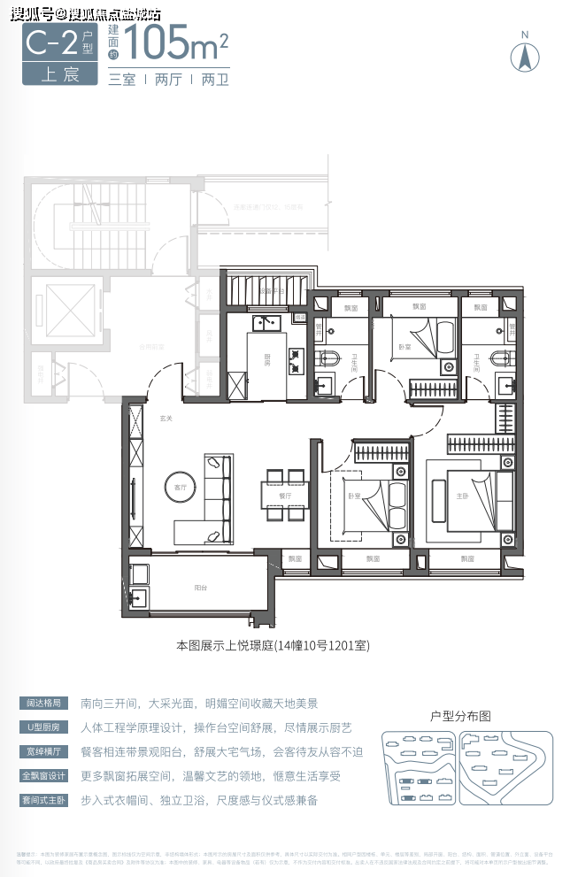 对比目前市面上同等面积产品,无论在空间感,还是整体功能布局上,国贸虹桥璟上这款105平三房两厅产品均具备爆红潜质:将客厅面宽最大化到约5.5米,这种尺度感一般在四房大平层产品上比较常见,合理利用阳台与大落地窗,不仅延伸了视野,还将餐客厅与阳台连成一体,让整体空间过渡自然,更显通透、明亮;