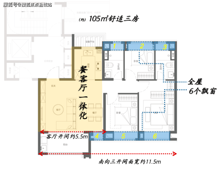 优越的窗墙比,可以最大限度将优美的景观纳入眼帘;南向三开间面宽更是达到了约11.5米,可以说市场同户型面积段产品很难做到这样极致化;功能房间以舒适度为导向服务生活,尺度均做到了当下主流产品水平之上;并且全屋附赠6处飘窗,高附加值令人心动。