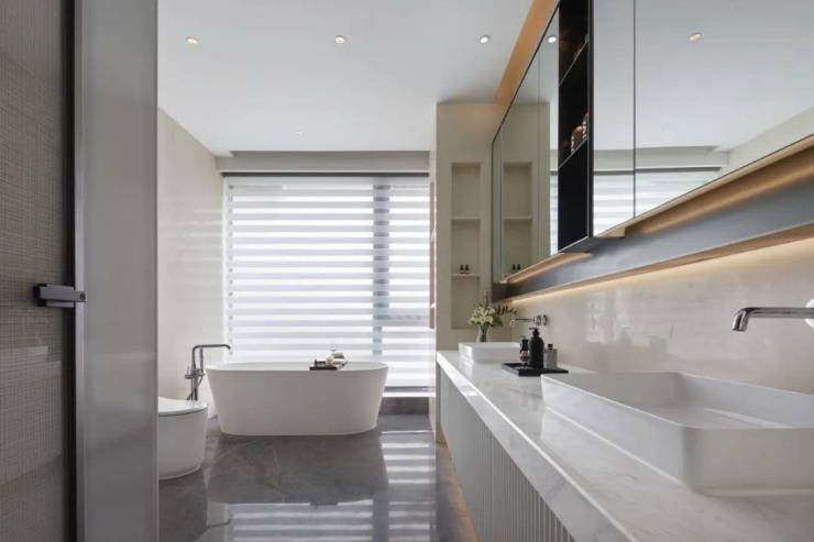 全屋智能家居系统,高级烤漆木饰面+全景落地窗,打造“低密大平层”标杆。