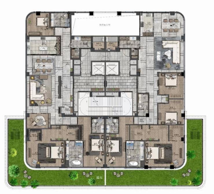 顶楼490㎡户型“一层一户”,赠送3个露台,媲美别墅空间体验。