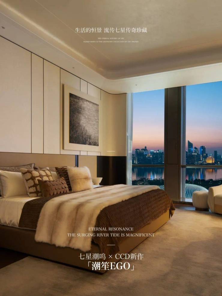 再走进样板间,这是两套接近「手工高定」的奢华世界,有着足够写实的生活细节丰度。建筑层高约4.3米,远超一般大平层的3.4米,搭配270°落地玻璃,是那种能让荷尔蒙瞬间爆表的气场。