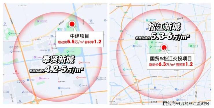 比如奉贤新城均价普遍在4.2-5万/㎡,而容积率1.2的中建项目联动价高达约5.5万/㎡;