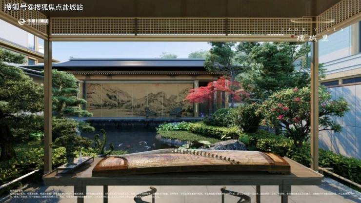 璟珹里摒弃平铺直叙,参考名画“自然天成”氛围,将坡地、池塘、小径、石桥等传统元素,融入园林中,并自然点缀唐画中竹、石、林、花等要素,营造景中有画、画中有景的生活画卷。