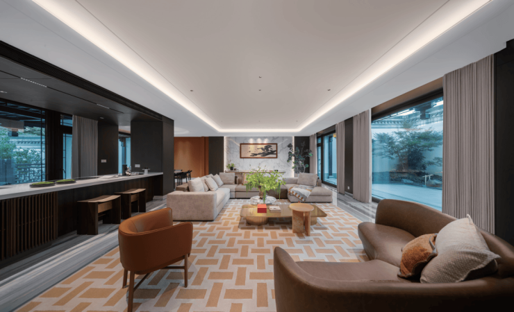 对她而言,四水归堂的设计不止是建筑形制,更是生活哲学— —流水归堂,人情归心。就像她执着于"东方美学与材质的现代转译",这里的墨瑟门窗最懂这份坚持: 全实木 打造的框架透着温润光泽,以其优秀的品质在天安门、科威特王宫、中南海紫光阁等重要场所广为应用 。立 面木作部分是老匠人手工打磨的柚木王,触感里藏着时 光的温度;专属云纹瓦当由原土烧制,经风雨洗练愈发沉静——这些细节,都在默默呼应对「美」的坚持。