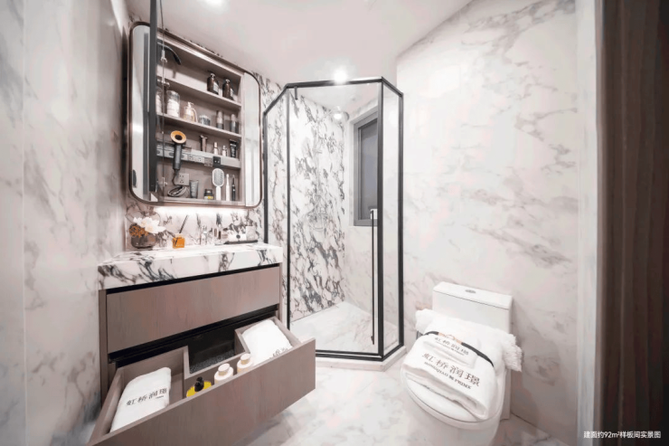 打工不易,充足的睡眠更难得!虹桥润璟建面约92㎡户型的双卫设计,便可完美规避抢厕所的场面,让早起洗漱不再紧张。