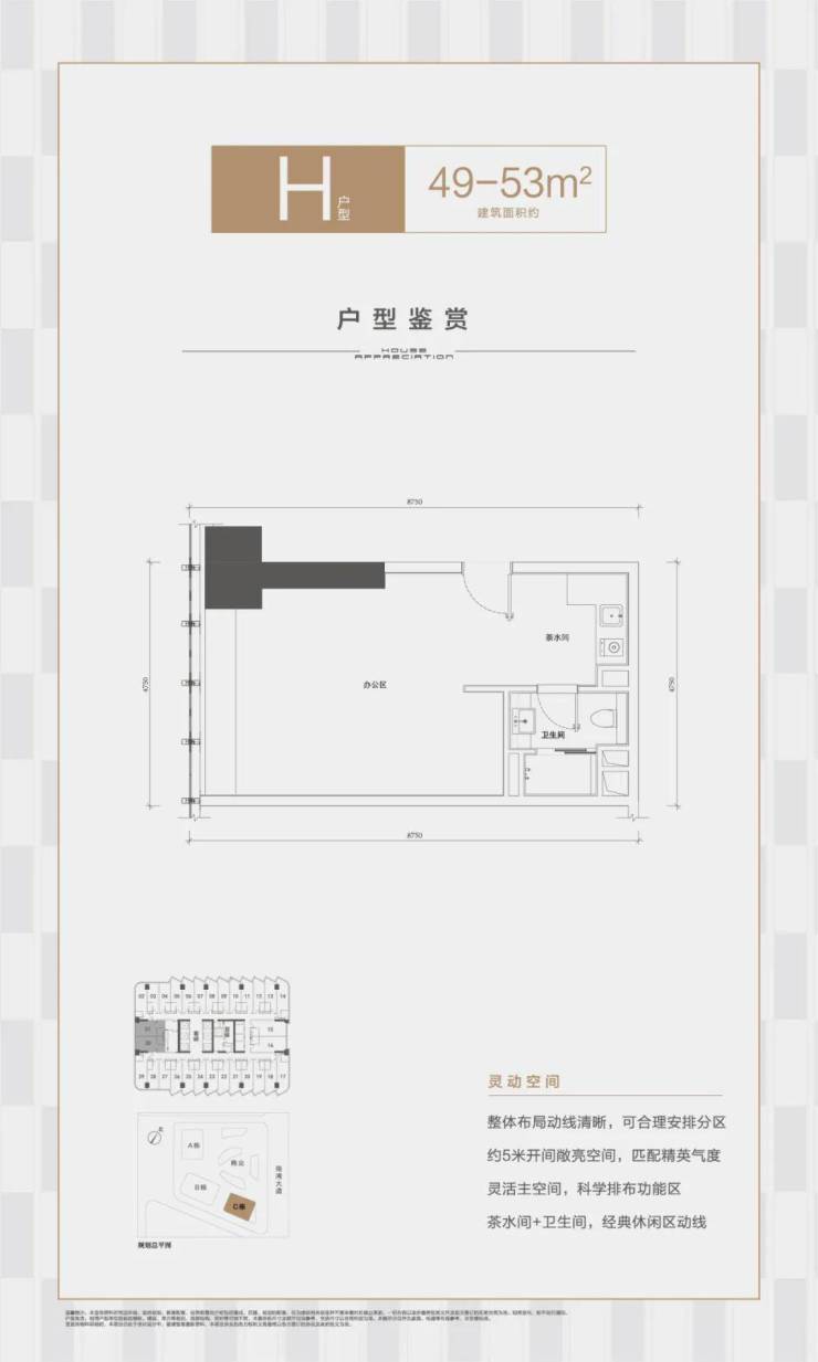 •金诚中心·天钻:约150米创意办公空间,共37层,建面约50951㎡
