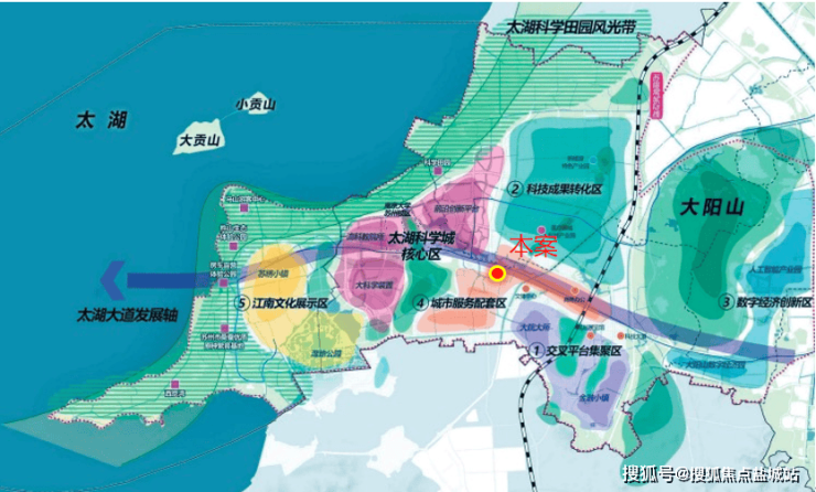 区域内打造国家级战略“中国太湖科学城”,建设世界级生态湖区、创新湖区;整体规划是“一山一湖、一轴一带,一核多区”;