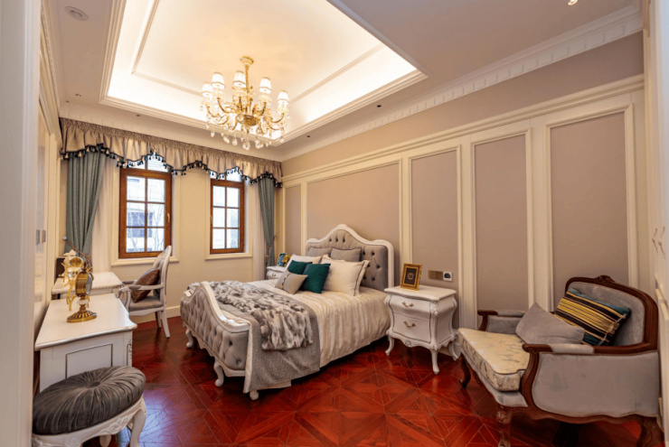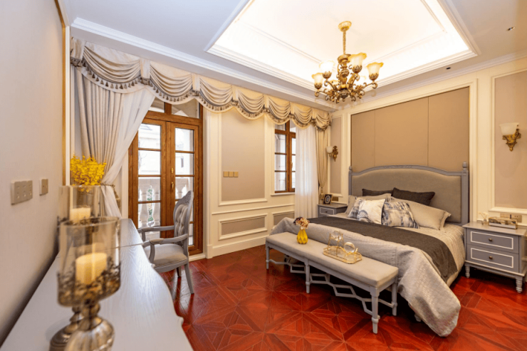 二楼豪华主卧套房,配有宽敞的衣帽间及奢阔明亮的主卫,南向瞰景露台揽尽庭院四季风光。
