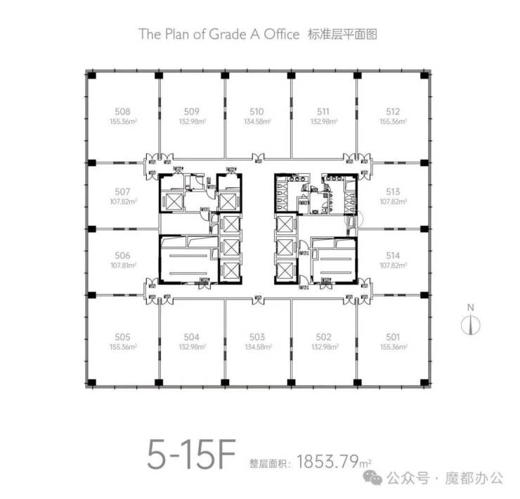 整层面积:1348㎡~1853㎡