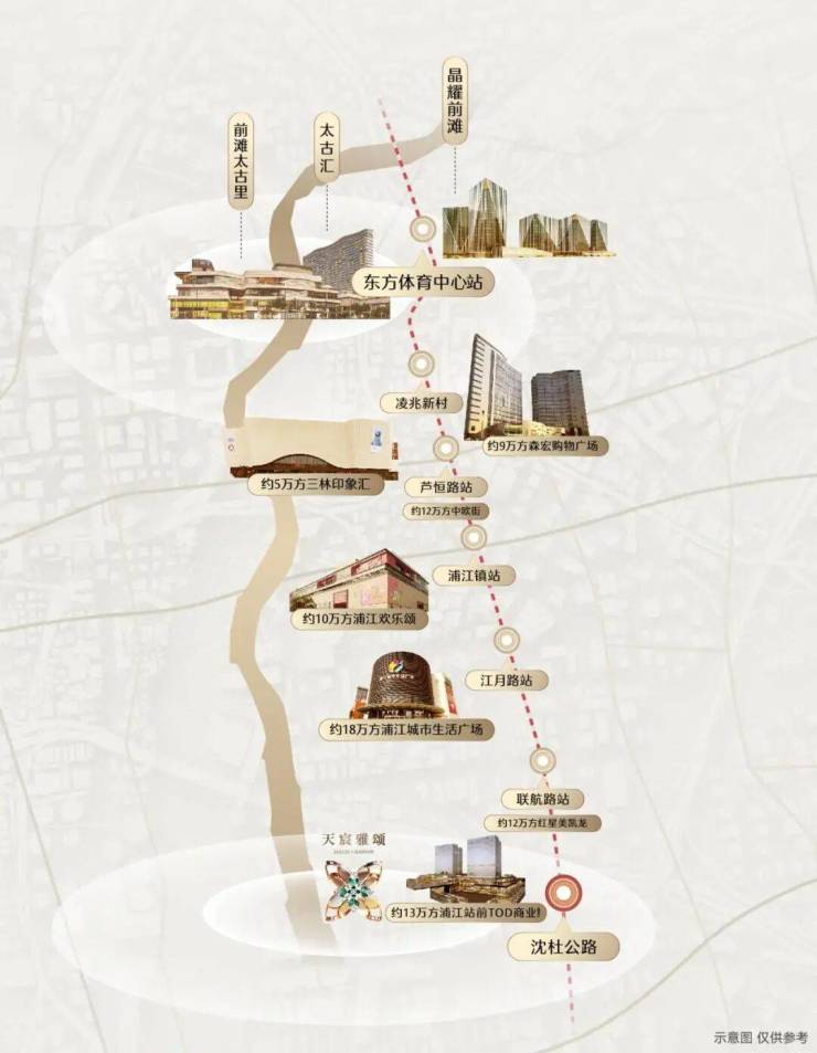 项目择址黄浦江沿岸约3公里处,位处上海中心城辐射区、闵行五大地级区中心及浦东四大城镇圈叠加地带,依托陆家嘴-世博-前滩发展主轴CAZ世界样板区的顶层规划,坐享前滩商业、文化等城市资源。周边产业、交通、商业、生态、教育、医疗六大资源环伺,构筑起便捷与品质兼具的生活圈。