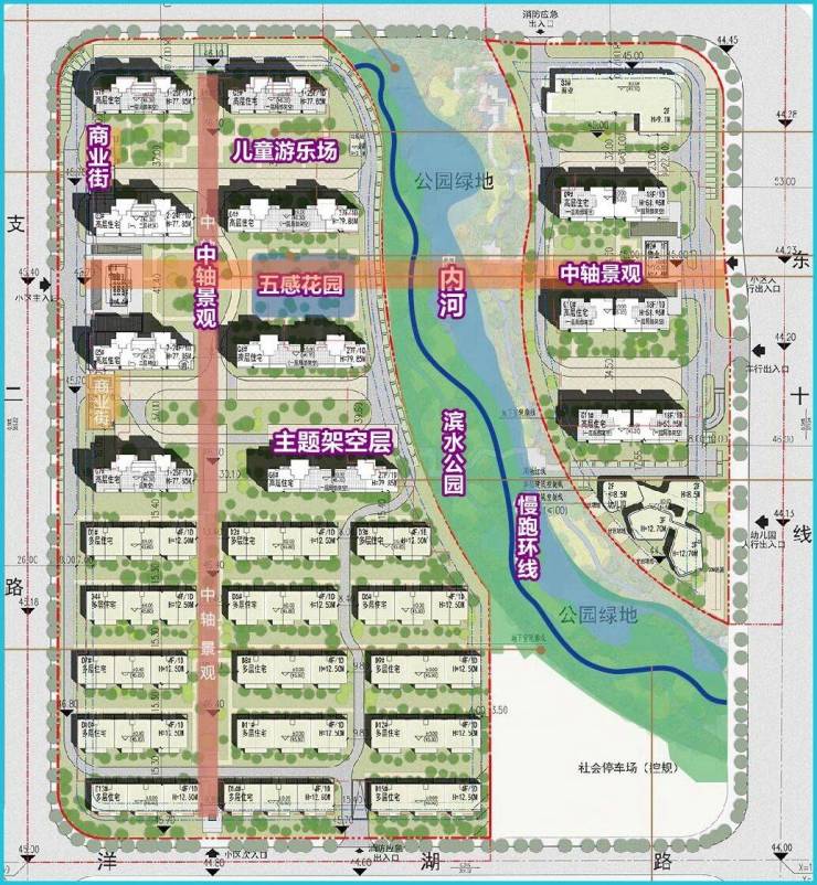 园林景观:依托松雅湖内河景观,打造“一水双园,明月八景”园林体系,规划约2.5万方高品质园林与滨河绿化,设置阳光草坪、会客厅、水杉林等多元功能空间。