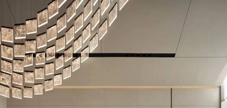 从灵猴诞生的故事到踏云西游的意境中汲取灵感,沙盘区吊灯采用精妙的设计,一叠一叠蔓延在空间上方,水晶剔透的材质,呈现出灵动的肌理,光线照射时,仿佛若隐若现的起舞,成为示范区内一道靓丽的风景。