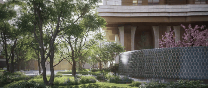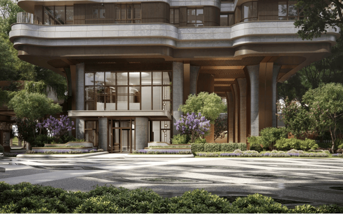 园林设计方面,项目更是突破传统“奢石”概念,以绿宝石切割技术打造地面铺装,以蓝宝石为灵感营造水景,处处展现极致品味,每一步行走都能感受到自然的艺术韵律。