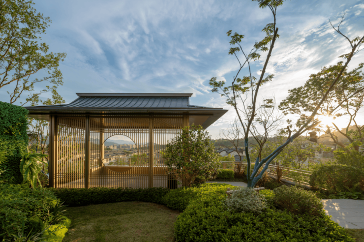 上依云泽,下傍竹海,绿城·映月谷沿山而建,打造户型面积约160-255㎡流金VILLA,用层层叠落的方式布局,达到户户可观山的极致视野。特调的原木金色框架,与青山厚韵交相辉映,勾勒一幅出当代意韵的山居图景。
