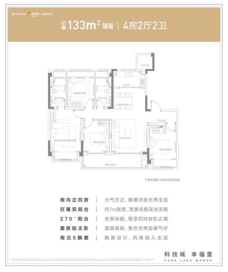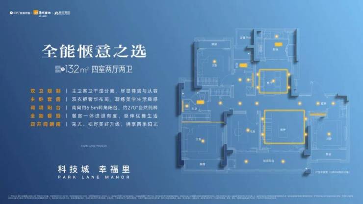 3.约6.5米270°转角视野的132㎡四房两厅两卫