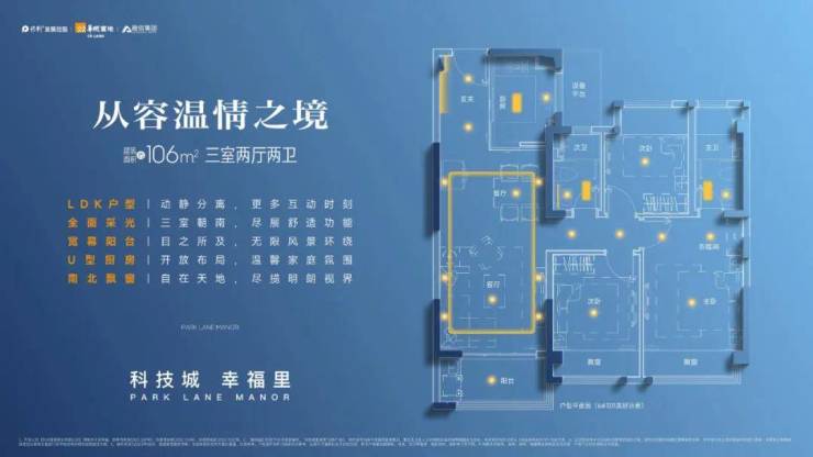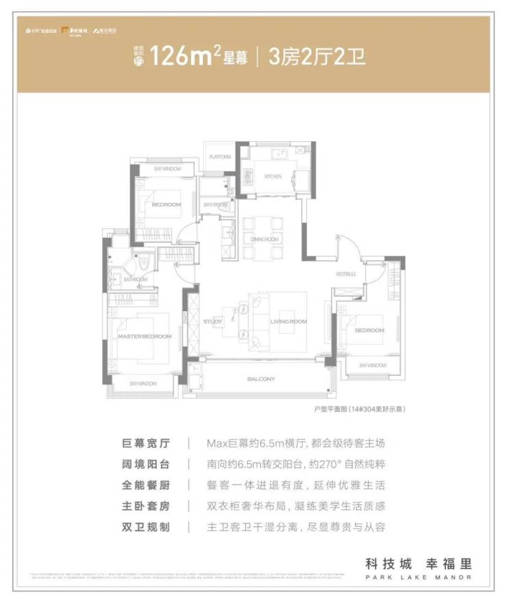 LDK设计,家人之间更多面对面、无阻碍交流场景;幸福餐厨,270度U形操作空间,使用方便;主卧套房,独立卫浴,私密性好,舒适度高;三重归家动线,精装双入户大堂,有序归家;北向次卧约2.8米开间,实现卧室化