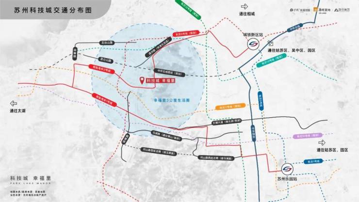 紧邻太湖大道主干道,有轨电车1号线与地铁1号线换乘,有轨电车2号线通达新区站。大阳山隧道首站(规划中)——中环西线北延,通达浒墅关,相城,园区,学区改善必看。