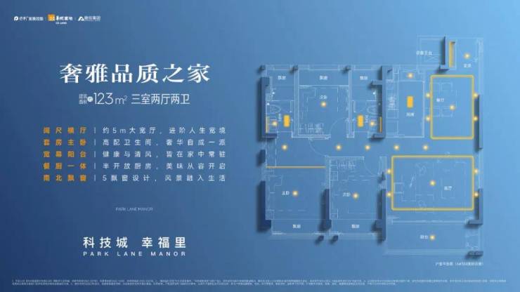 2.拥有约5米客厅开间的123㎡三房两厅两卫