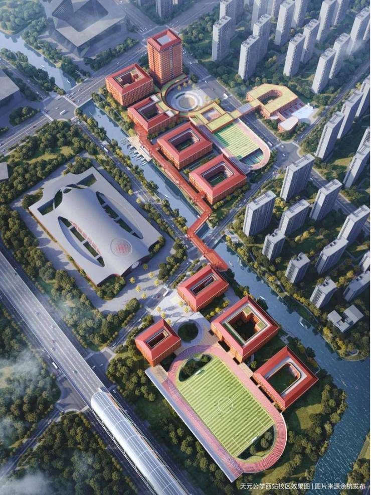 天元公学西站校区围绕个性化、现代化、国际化办学理念,将打造成为“从幼儿园到高中”十五年长学制的国际样板学校,建成后将成为一个拥有教育全场景的“教育综合体”。
