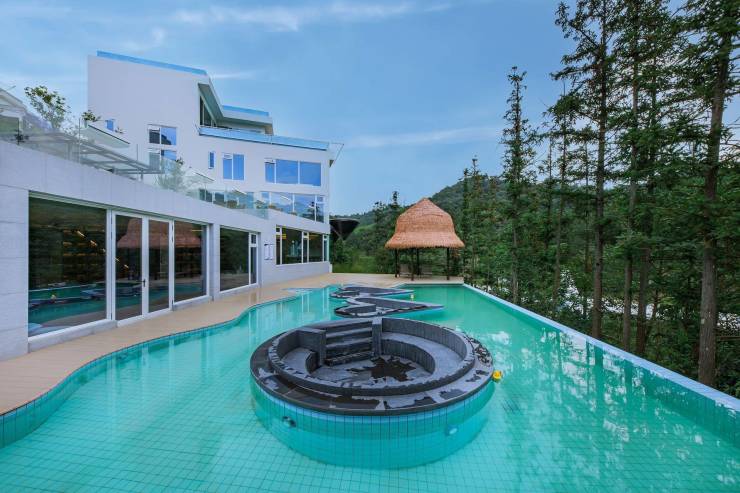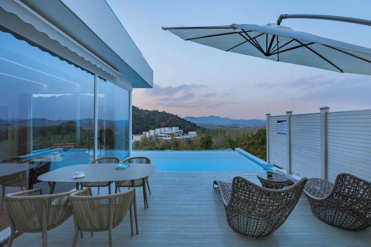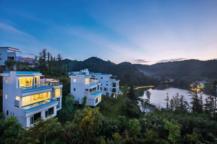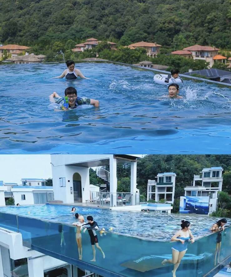 内部配套及景点:山顶树屋(度假村旅游目的地)、悬空泳池、爱心泳池、白色沙滩、玻璃栈道、高尔夫推杆、水上教堂、停机坪、高空瀑布、林中茶会。208个户外泳池(恒温服务),其中度假村巨资打造的悬空高度达33米的户外玻璃泳池是亚洲首创,徜徉其间的你可以体会到在山谷上方飞翔的感觉,悬空泳池的下方是酒吧和棋牌房,适合举办泳池派对,私人酒会等活动,此外,悬泳度假村还设有山林越野车、湖畔烧烤吧、岩壁瀑降、山林高尔夫挥杆练习场、野趣垂钓、水上桨板、水上婚礼舞台等新颖高端的设施配套。与户外生活方式多样性的结合。