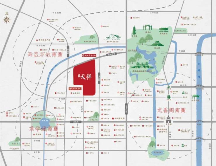 【4大商圈】坐拥文昌阁商圈、京华城商圈、三盛商圈及万达商圈,临近万象汇、大润发......拥揽扬州难得一见的商业资源集群;